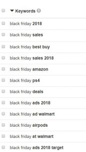 Puede resaltar la versión de prueba gratuita en el Meta Título para llamar más la atención (¡por supuesto SOLO si realmente es gratis!). En general, todos tendemos a hacer clic en un título específico en lugar de uno genérico porque es más probable que nos dé lo que estamos buscando. Por cierto, ¿cuál es la intención del usuario para las herramientas de contabilidad en pdf? ¿Y debería ser relevante para usted si no tiene archivos pdf? - Explote al máximo la búsqueda de palabras clave: Similar a la función de autocompletar de Google y búsquedas relacionadas, puede encontrar muchas ideas de contenido y palabras clave y long-tails aplicando esto en su búsqueda. Si bien no existe una herramienta específica para búsquedas relacionadas, recomiendo keywordtool.io para encontrar un interminable número de nuevas ideas de palabras clave. Por ejemplo, estas son algunas búsquedas relacionadas relevantes para el “viernes negro”: